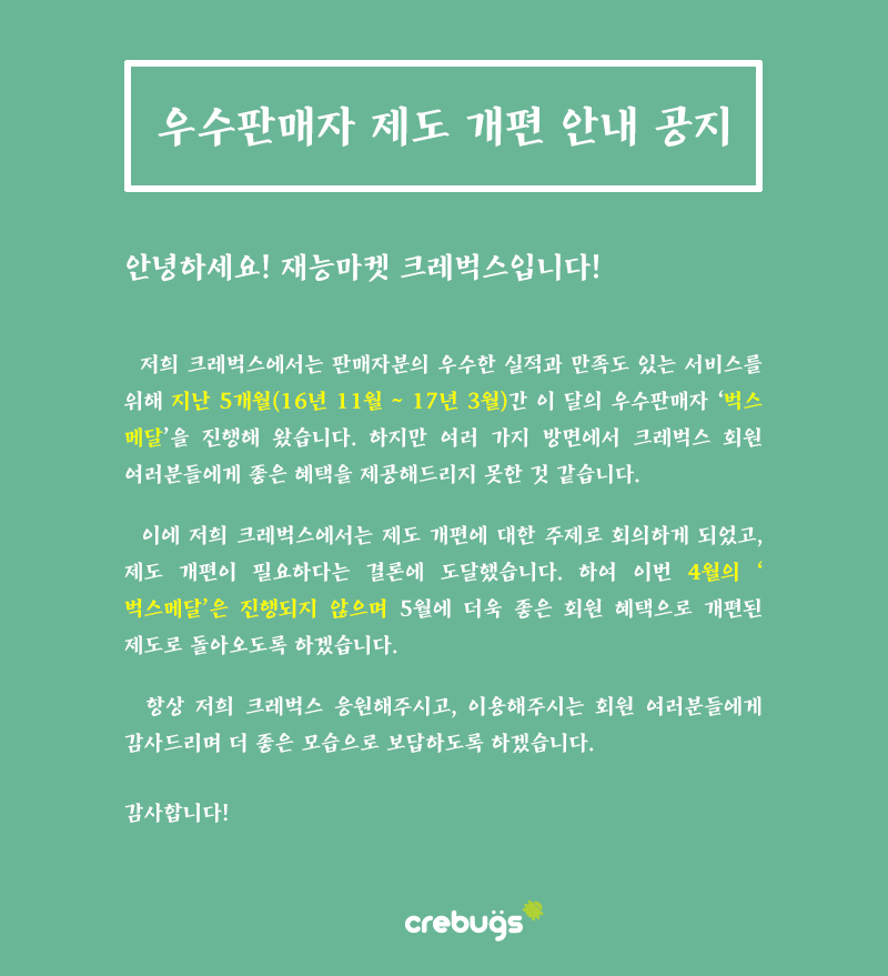 <우수판매자 제도 개편 안내 공지>