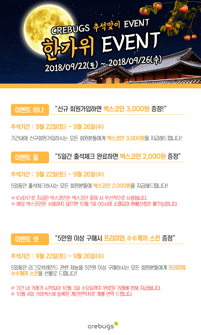 [종료][크레벅스 추석맞이 EVENT] 벅스코인 지급 및 프리미엄 수수께끼 증정 이벤트!