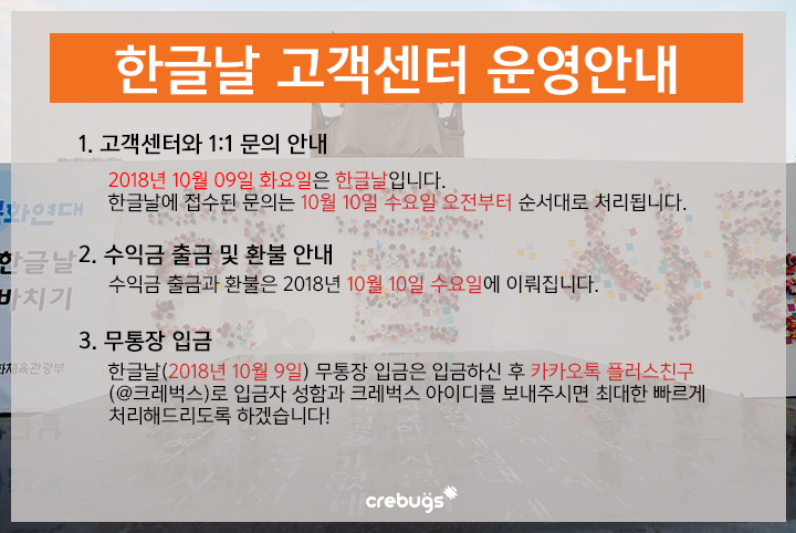 <한글날 고객센터 운영 안내>