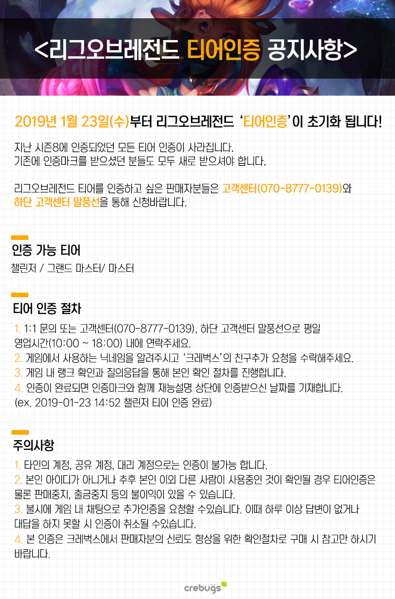 [공지사항] 리그오브레전드 시즌9 티어인증
