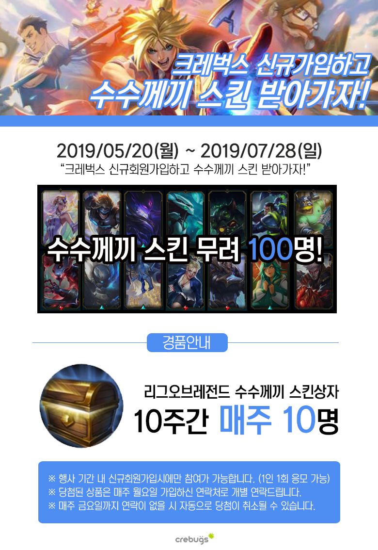 크레벅스 신규가입하고 수수께끼 스킨 받아가자!! 시즌2