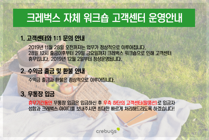 <크레벅스 워크숍 관련 고객센터 운영 안내>