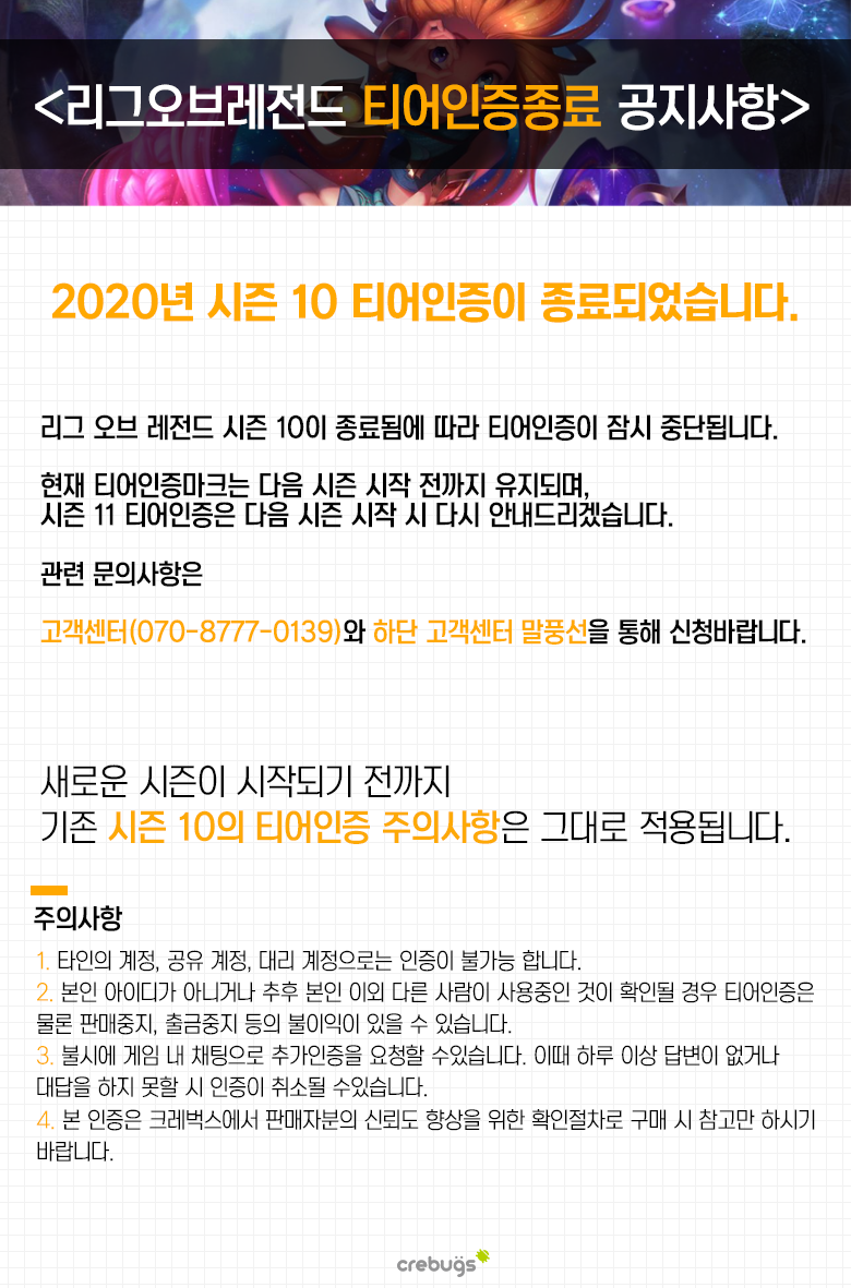 리그오브레전드 시즌10 티어인증종료 공지사항
