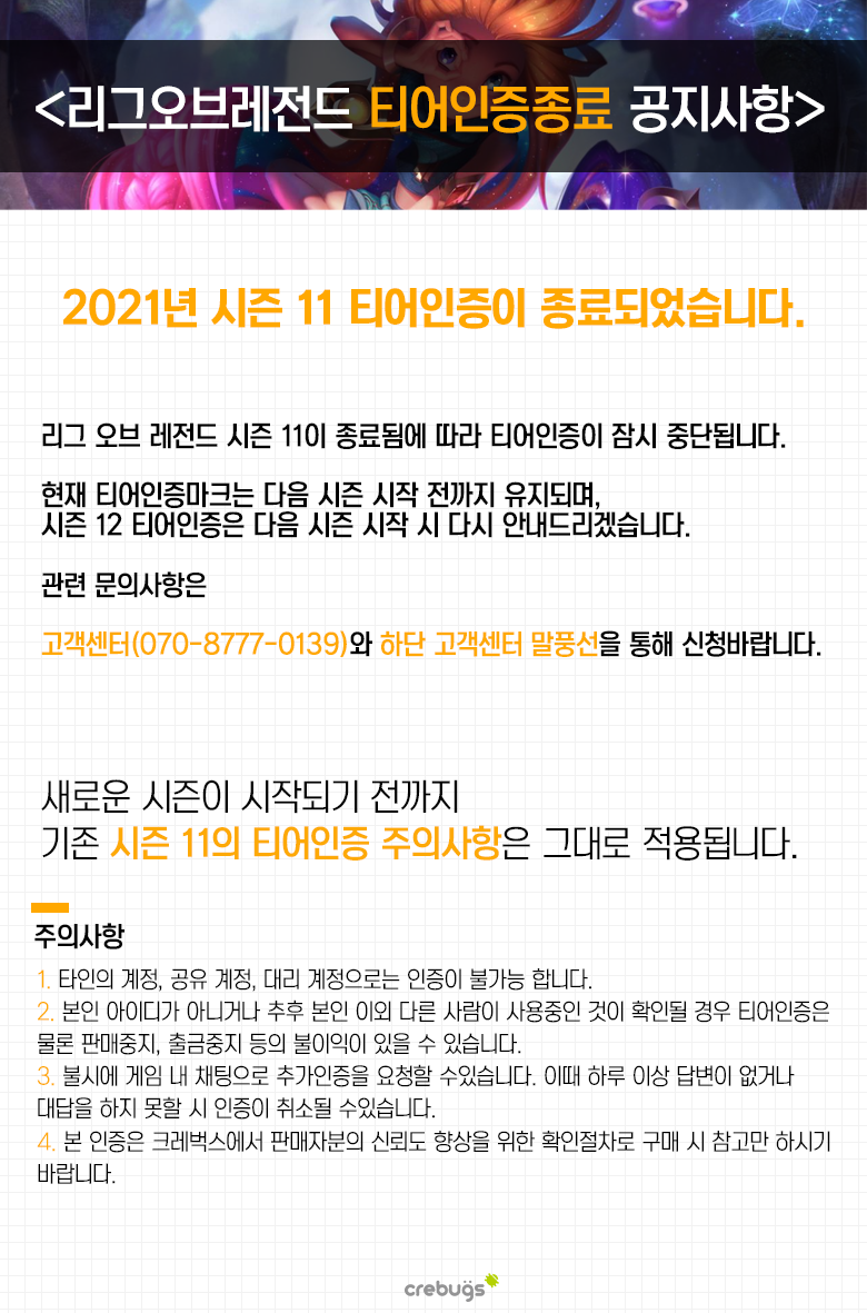 리그오브레전드 시즌11 티어인증종료 공지사항