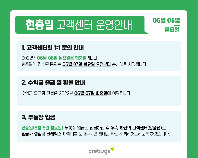 <현충일 고객센터 운영 안내>