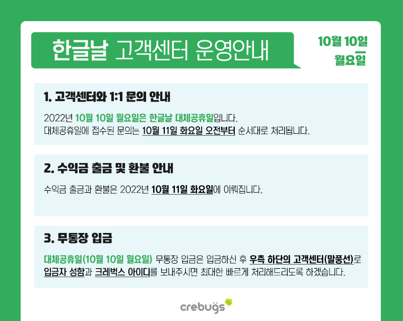 <한글날 대체공휴일 고객센터 운영안내>