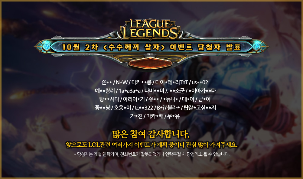 10월 2차 <수수께끼 상자> 이벤트 당첨자 발표!