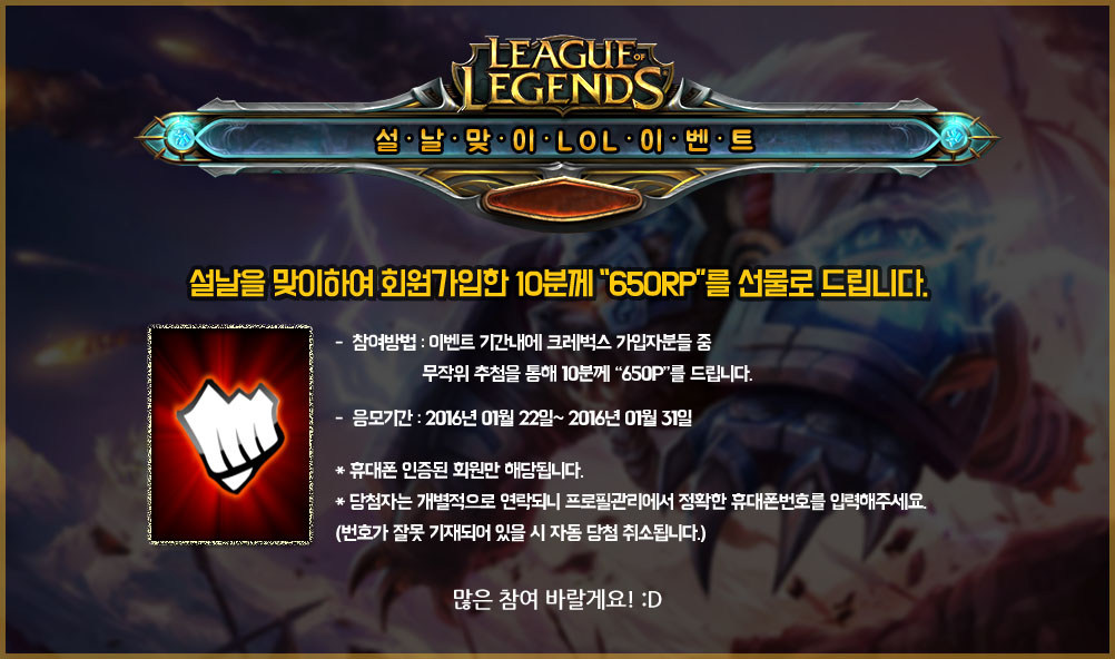 회원가입만 해도 650RP를 준다!?