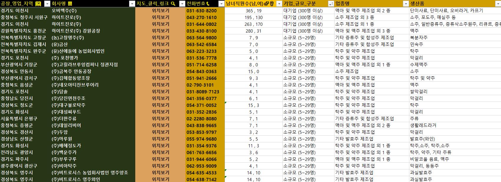 1. 초정밀 필터링! 수십만 건 데이터 속에서 추출한 주류 제조업체 리스트(수제 맥주/전통주 포함)로, 잠재 고객을 정확히 찾아드립니다. 압도적인 효율성으로 시장 틈새를 공략하세요!