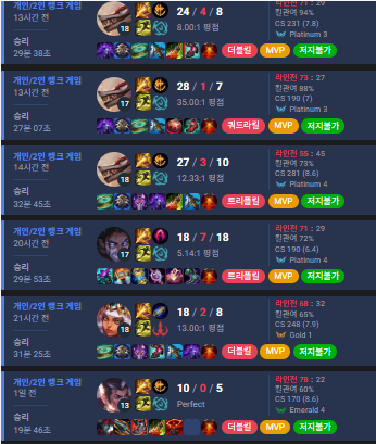 티어 / 승패와 승률 / 원하시는 판수 / 시작시간