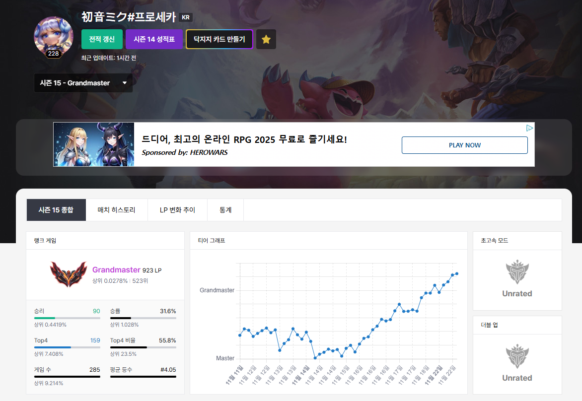 현재 그랜드마스터 기사입니다. 이번시즌 챌린저 11층까지 찍었습니다.