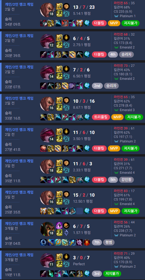 6+1) 포로팀에서 개인으로! 현시즌 그마로 돌아왔습니다.