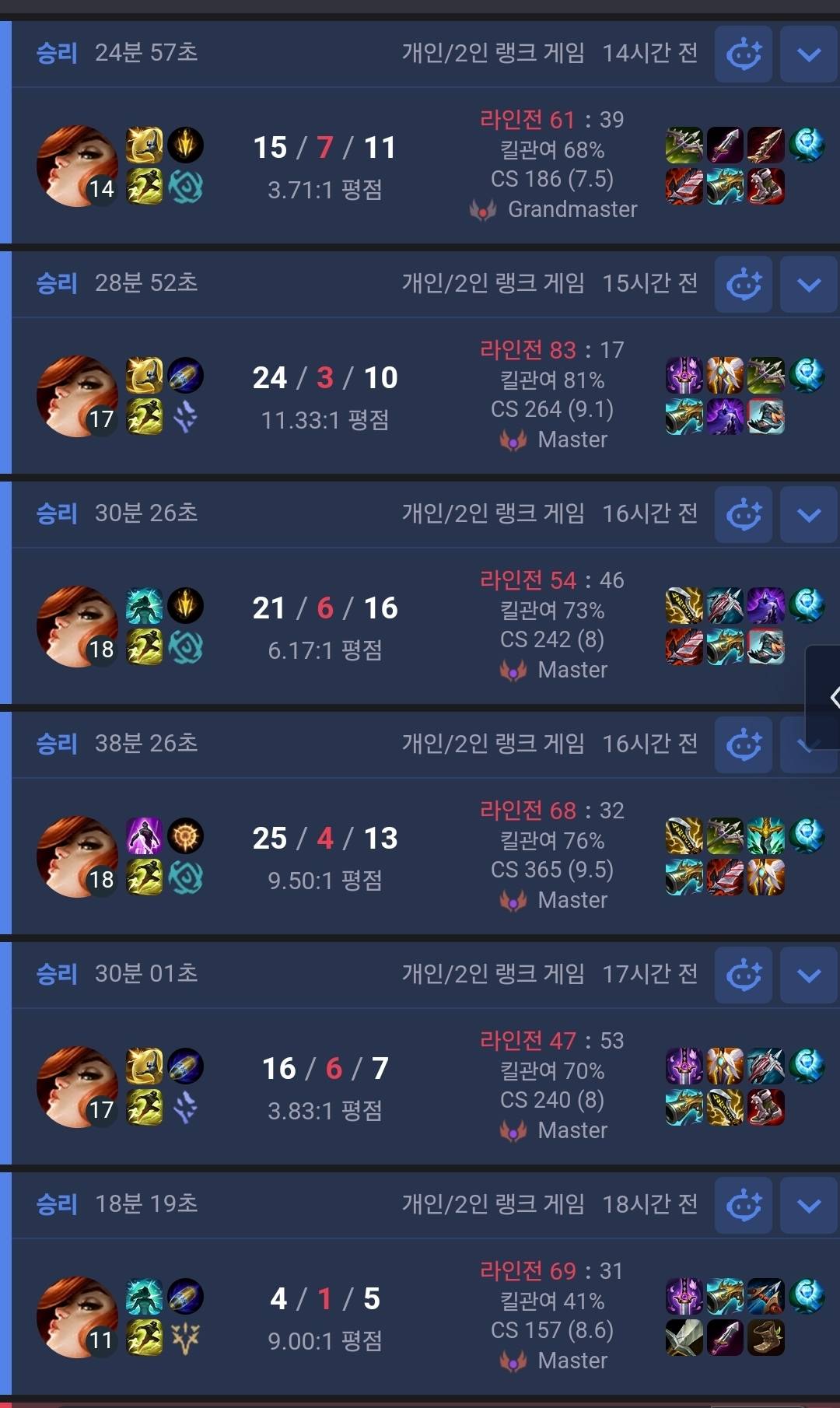 판수제 듀오 강의는 승패와 상관없이 진행되지만 저는 최소 9할 승리만을 목표로 하고있습니다.