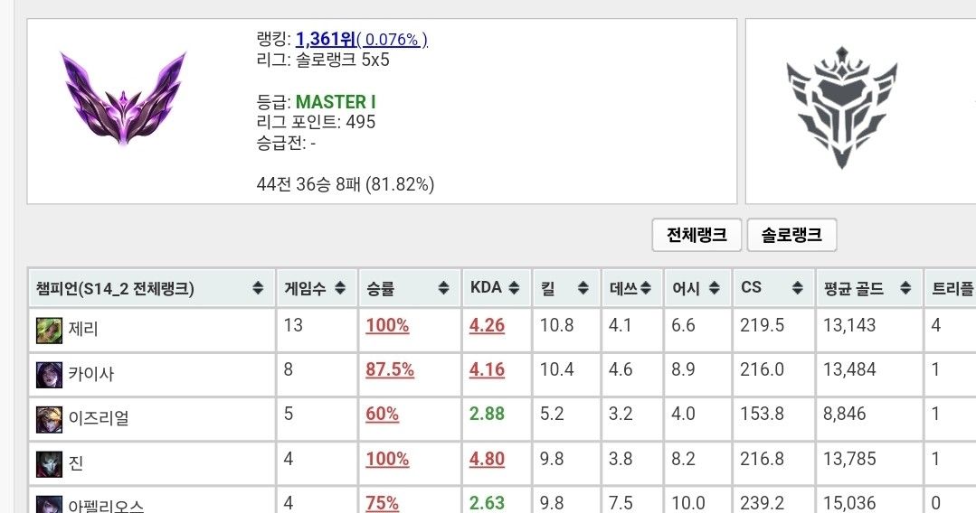 개인기사로 다이아구간부터는 원딜 정글로만 가능하다는 점 참고해주세요 !
