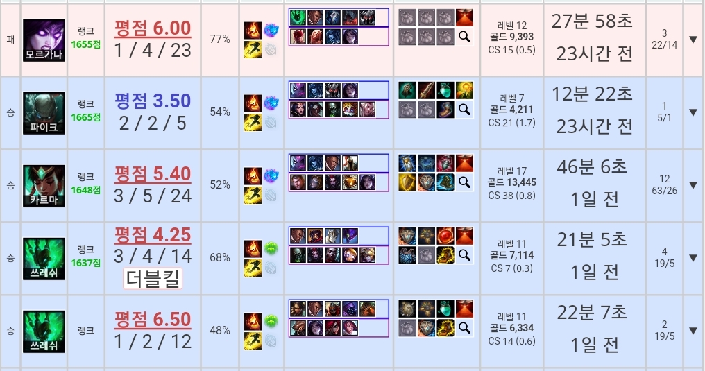 안녕하십니까. 전시즌 다1 주라인정글,서폿 올라인유저입니다.