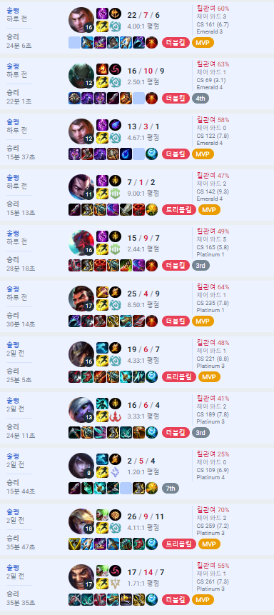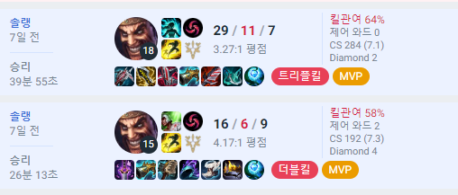 16시즌 챌린저 찍고 복귀했습니다