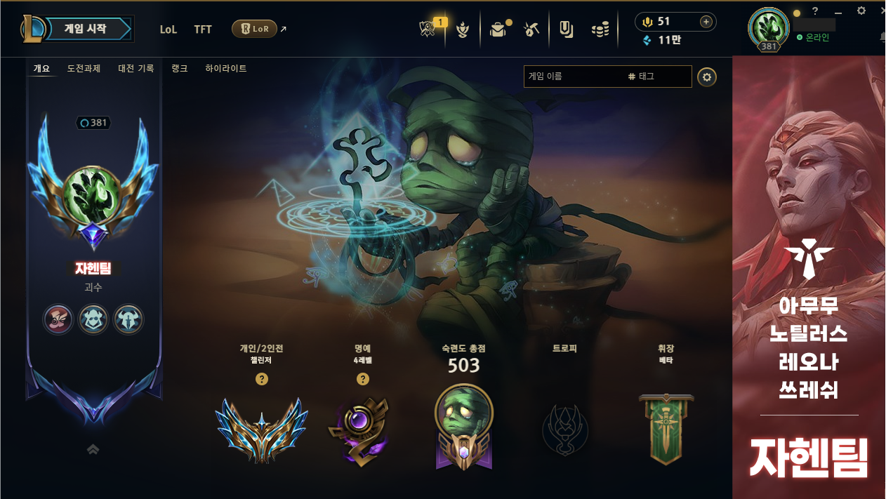 원딜 기사님: 챌린저 1700점 출신 랭킹 10위권 강사님