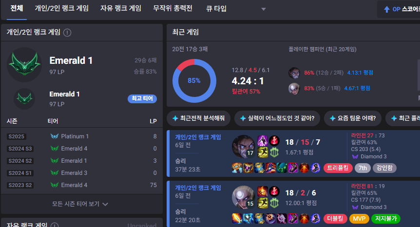 안녕하세요 전시즌 마스터300점 현시즌 마스터 미드,정글 개인기사입니다.